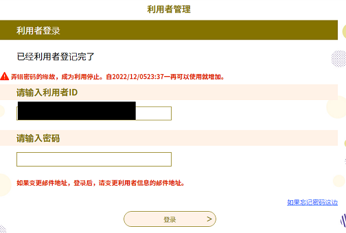 ※输错密码超过规定的次数的话,账号可能被停用。请多加注意。
