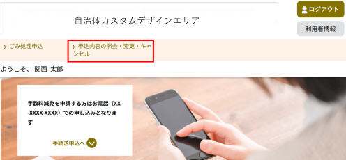 この操作によって、申込を行った手続きの内容と処理状況の確認を行えます。